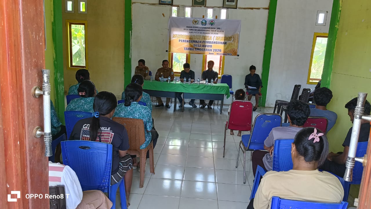 Musdes dihadiri oleh Kepala Desa Kuwo, Melkias Katiandago, beserta perangkat desa, Badan Permusyawaratan Desa (BPD), tokoh masyarakat, tokoh pemuda, serta perwakilan warga masyarakat.
